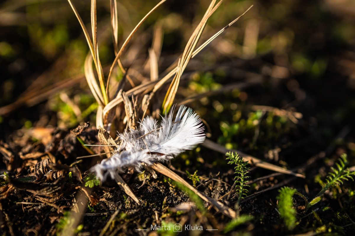 Ale tym razem jak się nasz piesek bawił z innym pieskiem udało mi się uchwycić piórko na ziemi. W sumie to ciekawe ćwiczenie na uważność takie spacerki.
