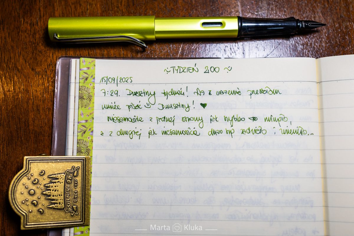 Ale jedno jest niezmienne – uwielbiam te moje pół godziny z piórem i papierem. Nie robię na co dzień żadnych akcji dbania o paznokcie czy włosy, to przynajmniej zrobię akcję dbania o myśli.