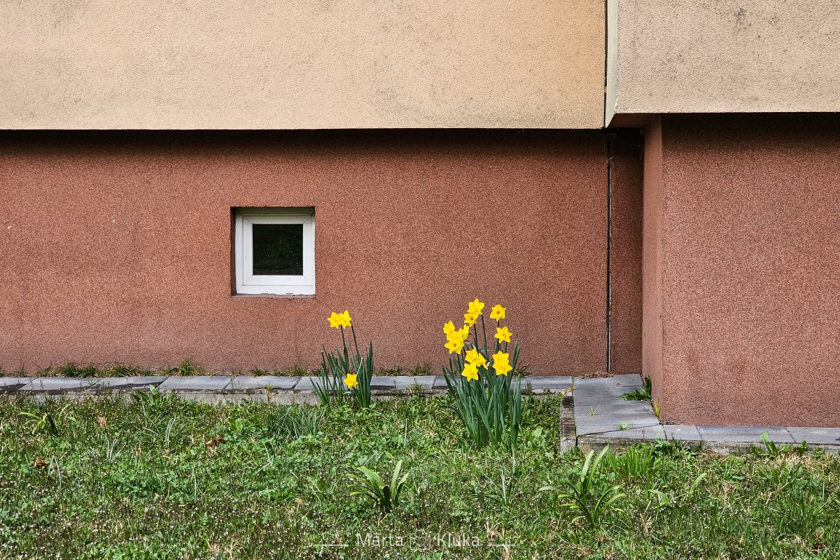 Dziś na spacerek zapomniałam aparatu, a piesek poprowadził z innej strony i moim oczom ukazał się taki kadr, pięknie kontrastujący budząca się wiosnę ze sraczkowatym murem bloku.